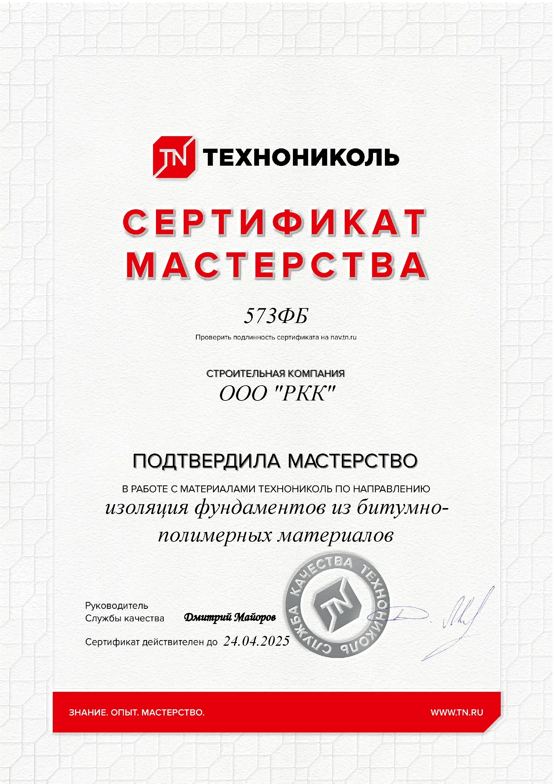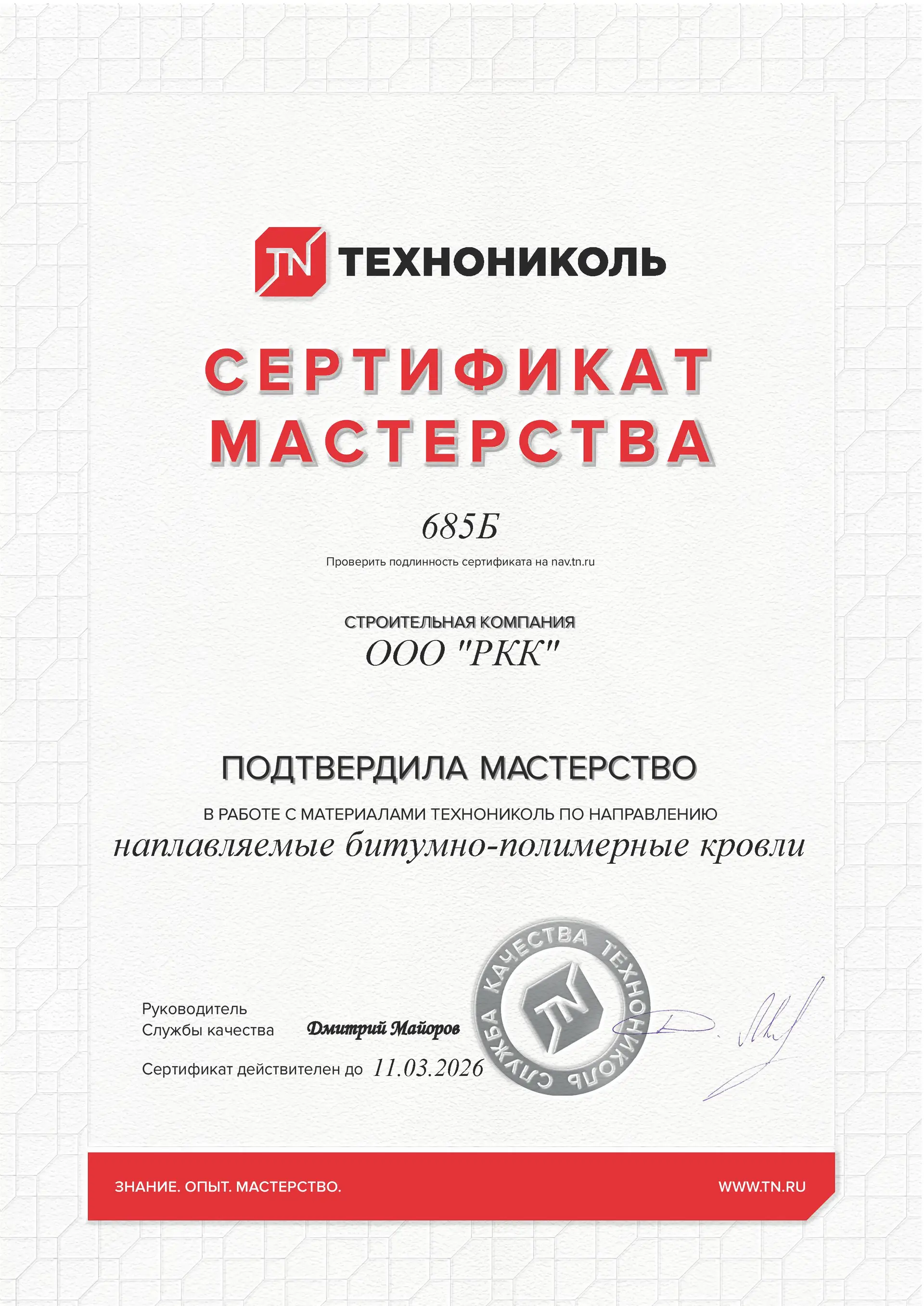 Все работы выполняются штатными специалистами, прошедшими обучение и аттестацию у производителей материалов.